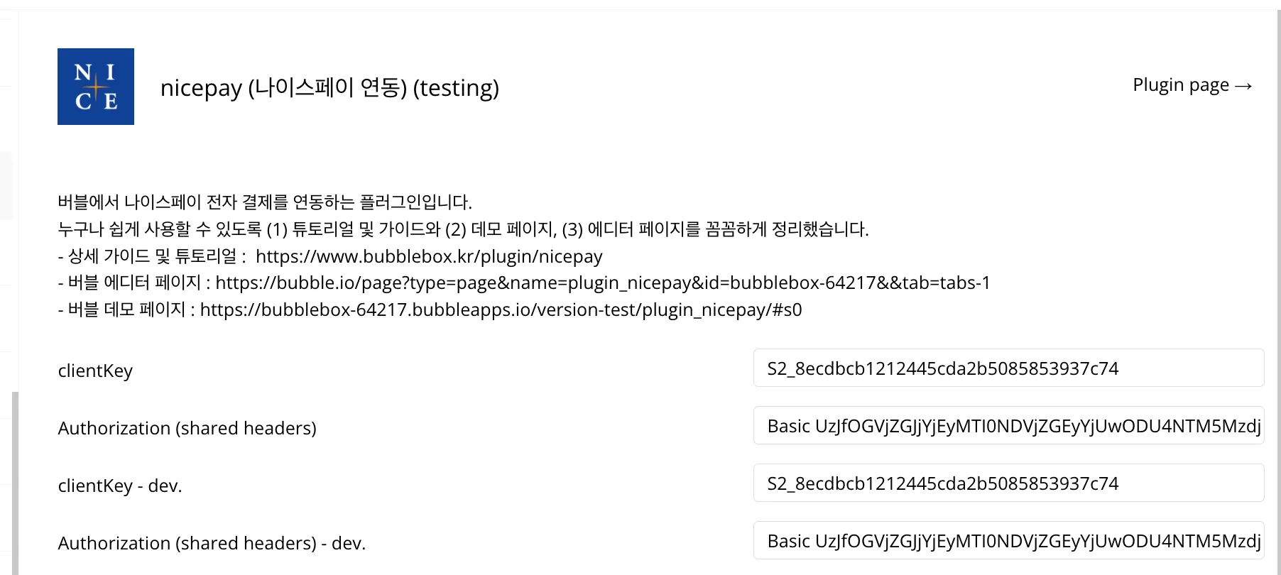 버블에서 나이스페이 전자 결제를 연동하는 플러그인입니다.