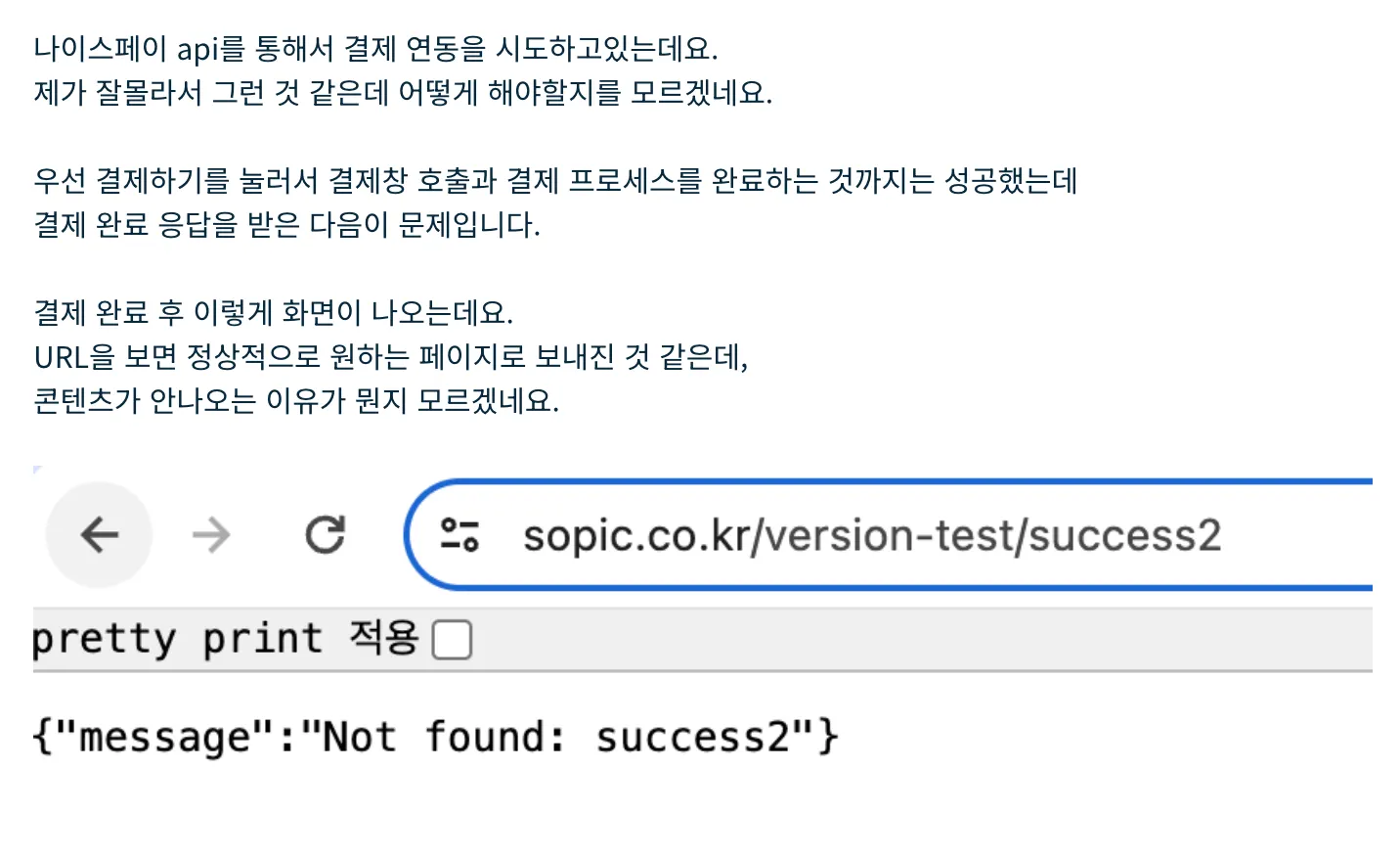 결제 승인 과정은 인증 과정을 완료한 후, returnURL로 이동한 후에 시작됩니다. 즉, ‘returnURL 이동’이 트리거 역할을 하는 셈입니다. 단, returnURL을 버블의 특정 페이지로 설정하면, 해당 URL을 찾지 못한다는 에러가 발생합니다. 해당 이슈는 버블 포럼을 확인한 결과, 버블의 자체적인 문제로 파악됩니다.