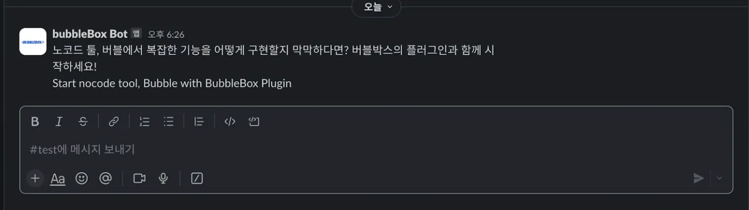 버블에서 슬랙으로 메시지를 즉시 전송하거나 예약해 전송할 수 있는 플러그인입니다.