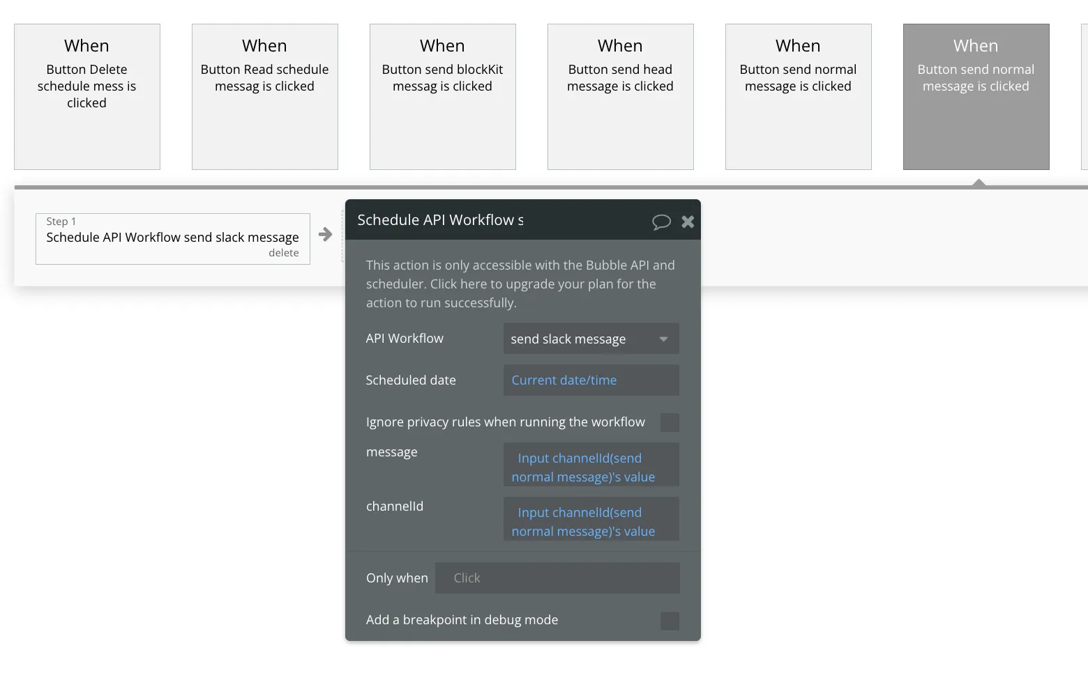 버블에서 슬랙으로 메시지를 즉시 전송하거나 예약해 전송할 수 있는 플러그인입니다. This is a plugin that enables sending messages instantly or scheduling messages to be sent from Bubble to Slack.