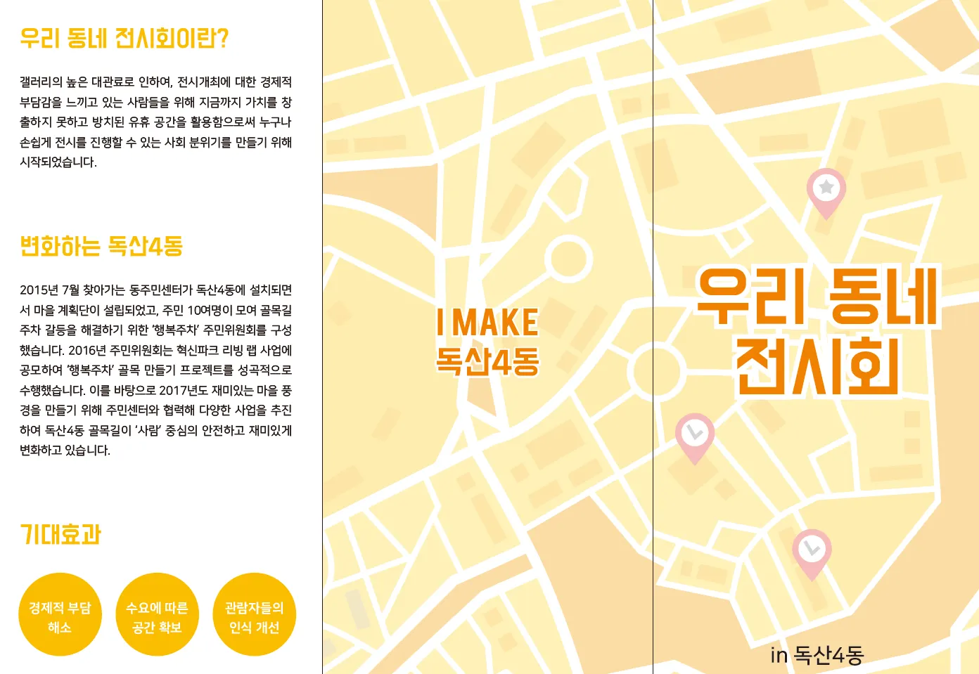 (2차) 독산4동 공원과 교회 등의 잉여 공간에서 전시회를 진행했습니다. 성공적인 반응을 받아, 도시 재생 사업의 일환으로 학회지에 기록됐습니다.