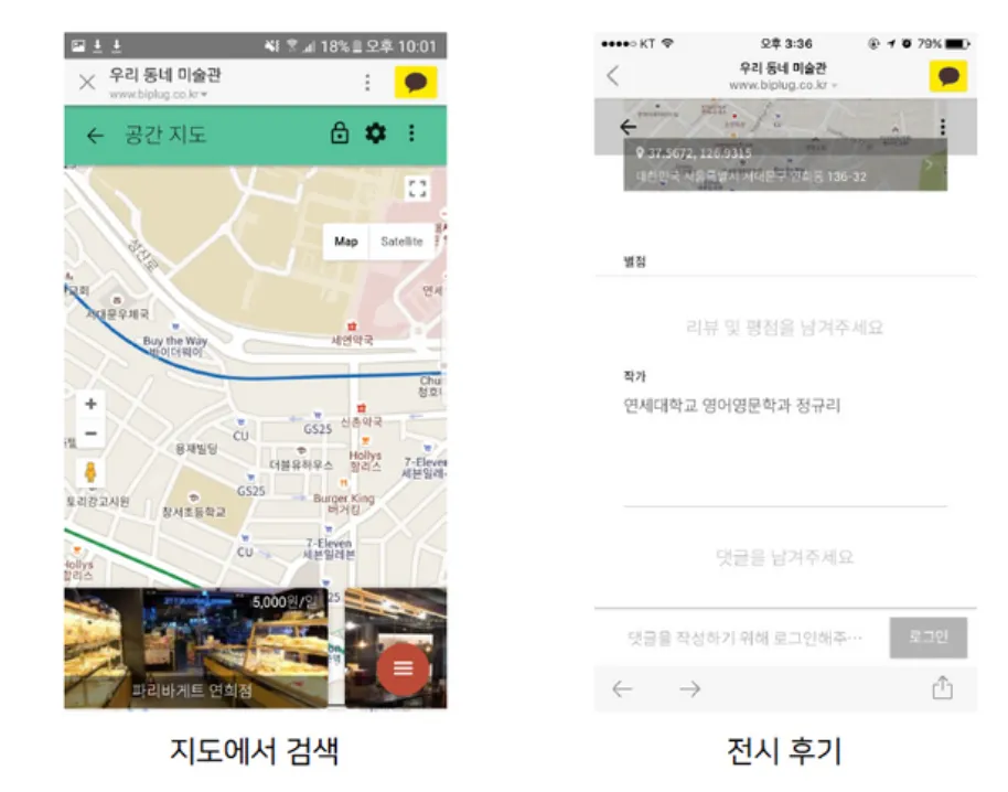 일반 시민은 현재 진행 중인 유휴 공간 전시회를 지도에서 확인