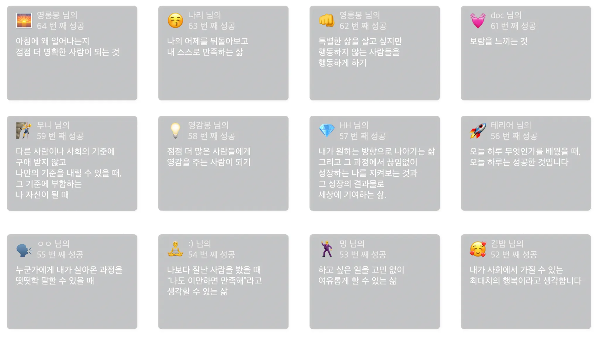 ‘성공’에 대한 서로 다른 정의를 이야기하면 재밌을 것 같다는 생각에, 성공 스토리 커뮤니티를 기획했습니다.